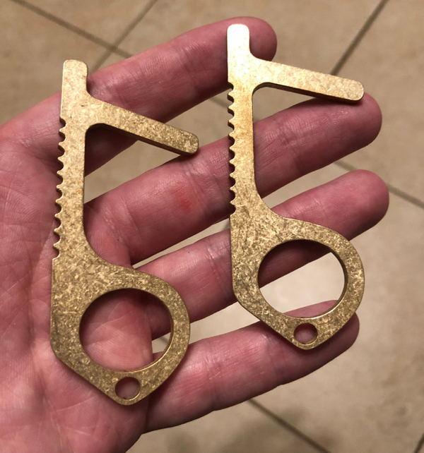 They go on your key ring, and you use them to open doors or push buttons, so you don’t have to use your fingers.