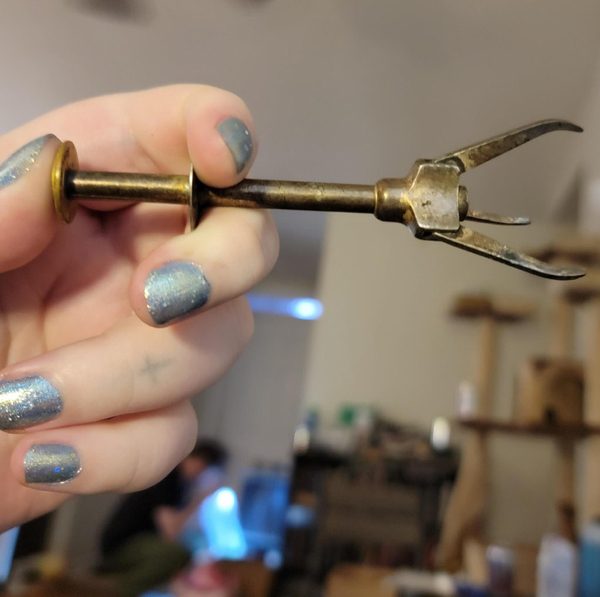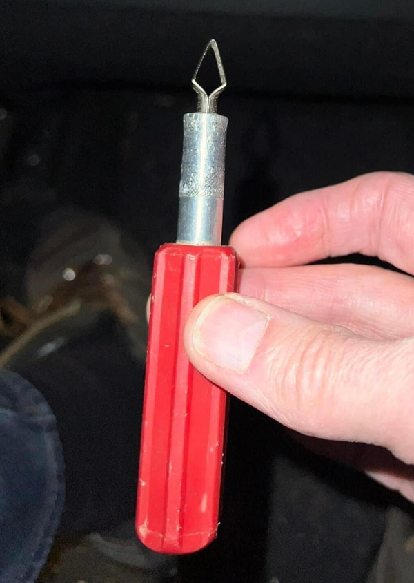 It’s a plastic handle metal triangle thing on top that looks like it might be used to put grooves in something. What could it be?