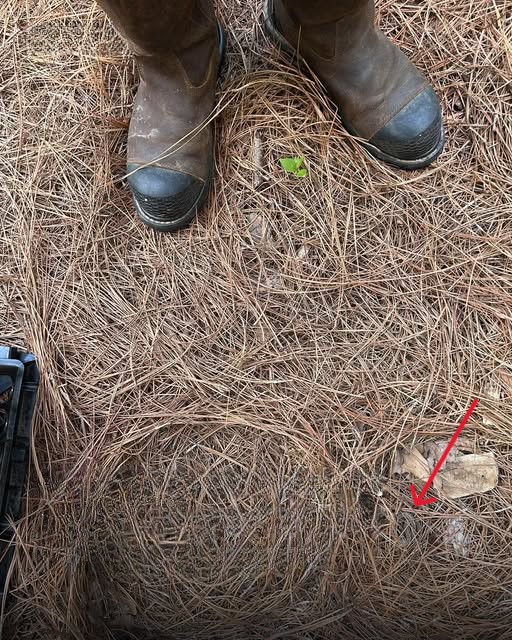 At first glance, this image looks completely ordinary — boots standing on a forest floor covered in dry pine needles. Nothing unusual. Nothing threatening. Just texture and repetition.